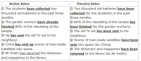 1. Ask the Ss to find the sentences in the passage which include the Present Perfect Tense and then change them into the Active Voice.