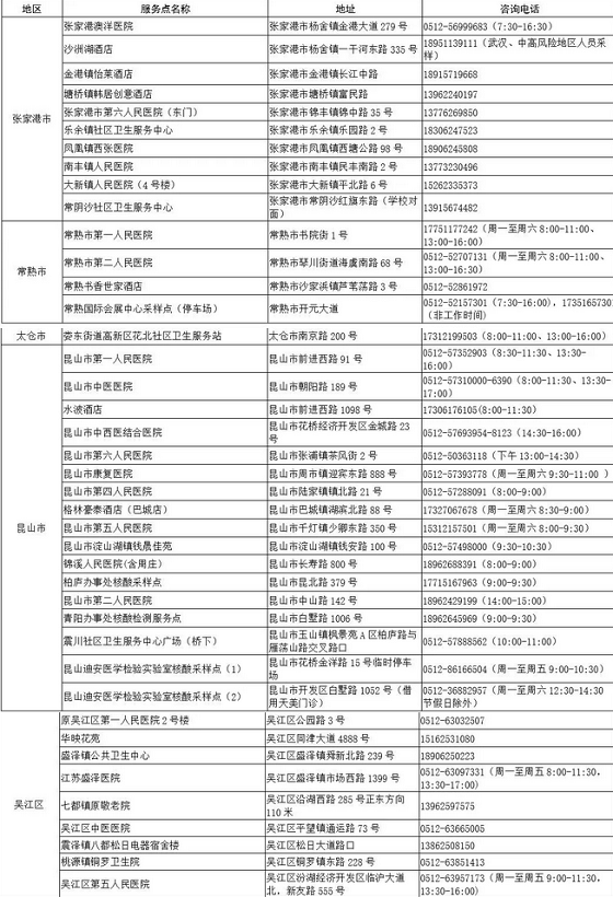 蘇州市70家采樣服務(wù)點(diǎn)