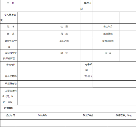 安徽省蕭縣中學(xué)引進(jìn)教師報(bào)名登記表