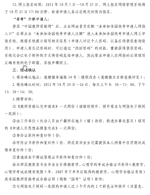 關(guān)于2012年秋季幼兒園、小學(xué)、初級(jí)中學(xué)教師資格認(rèn)定的公告