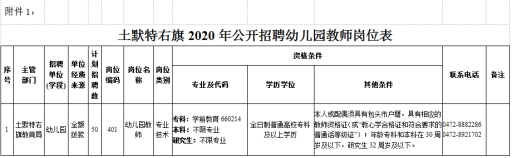 附件:土默特右旗2020年公開招聘幼兒園教師崗位表