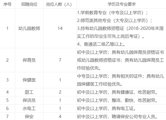 (三)年齡限制:幼師、保育員、保健醫(yī)45歲以下,其他崗位人員50歲以下。