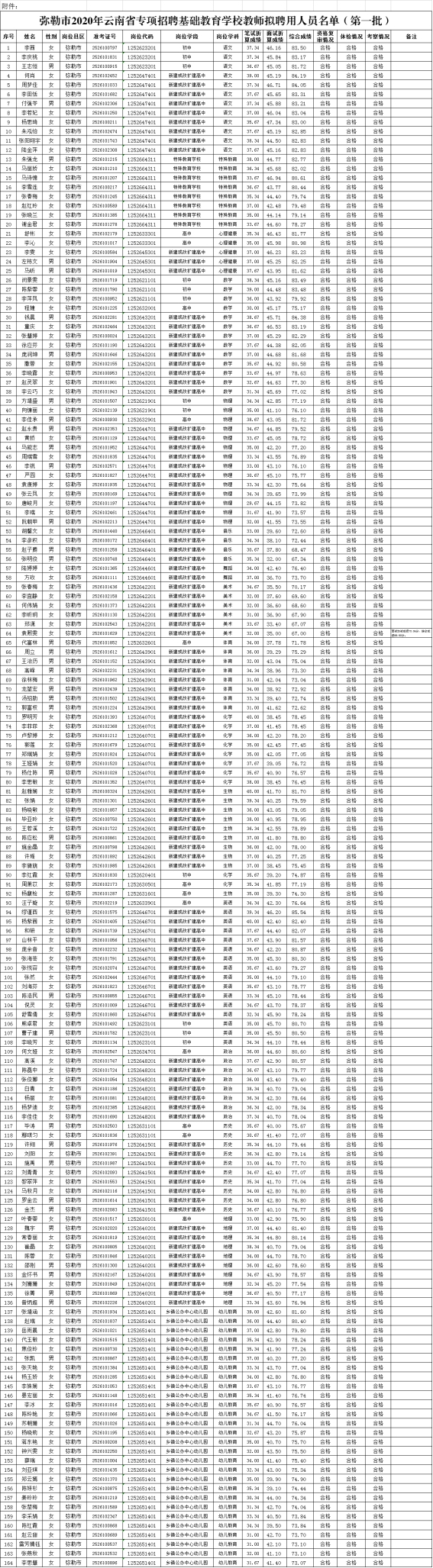 附件:彌勒市2020年云南省專項(xiàng)招聘基礎(chǔ)教育學(xué)校教師擬聘用人員名單(第一批)