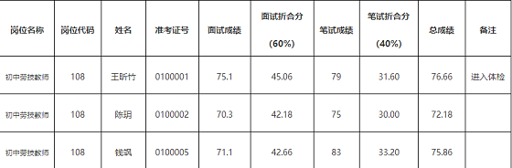 根據(jù)《2020年蘇州市教育局直屬學(xué)校公開(kāi)招聘教師簡(jiǎn)章》,經(jīng)過(guò)筆試、面試,現(xiàn)將面試及總成績(jī)公示如下: