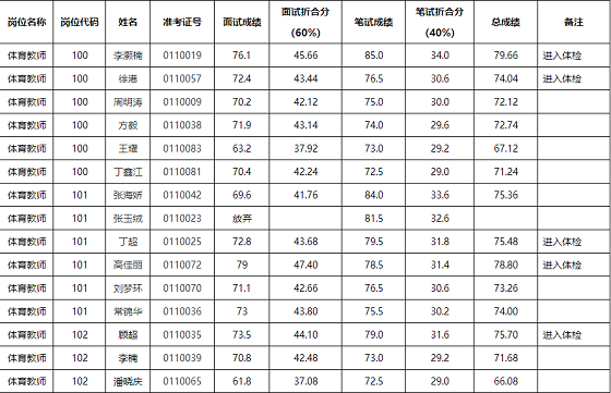 根據(jù)《2020年蘇州市教育局直屬學校公開招聘教師簡章》,經過筆試、面試,現(xiàn)將面試及總成績公示如下: