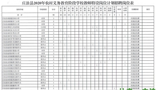 附件:莊浪縣2020年農(nóng)村義務(wù)教育階段學(xué)校教師特設(shè)崗位計(jì)劃招聘崗位表