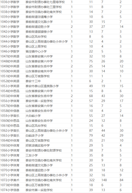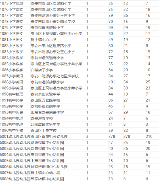 2020年山東泰安泰山區(qū)公開(kāi)招聘教師報(bào)名統(tǒng)計(jì)表(截至7月6日12點(diǎn)8分)
