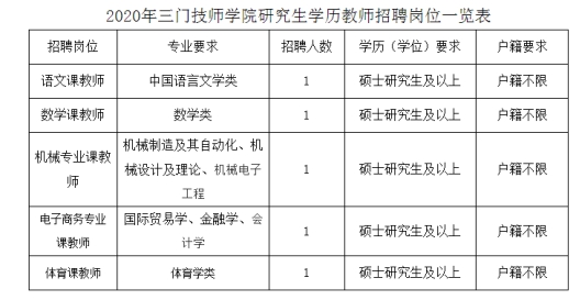 1、2020年三門技師學(xué)院研究生學(xué)歷教師招聘崗位一覽表