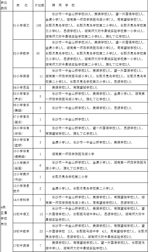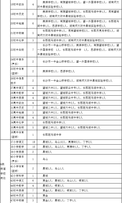分A類區(qū)屬學校、B類街道學校和C類鄉(xiāng)鎮(zhèn)學校設崗,具體崗位如下: