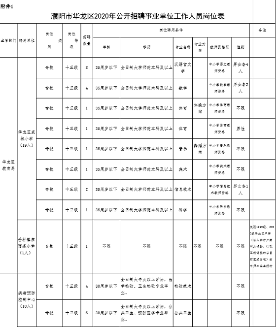 濮陽市華龍區(qū)2020年公開招聘事業(yè)單位