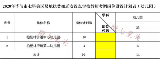 擬考調(diào)教師167名(其中幼兒園教師14名,小學(xué)教師106名,初中教師47名)。設(shè)崗在七星關(guān)區(qū)易地扶貧搬遷安置點(diǎn)配套的學(xué)校 。