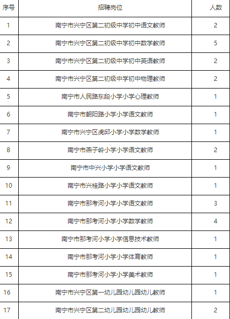 2020年廣西南寧市興寧區(qū)公辦中小學(xué)、幼兒園面向社會公開招聘優(yōu)秀教師簡章【31人】