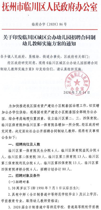 關于印發(fā)臨川區(qū)城區(qū)公辦幼兒園招聘合同制幼兒教師實施方案的通知.pdf