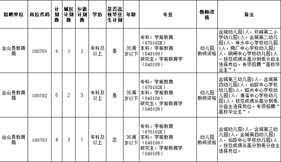 附件1:含山縣2020年公開(kāi)招聘幼兒教師崗位表