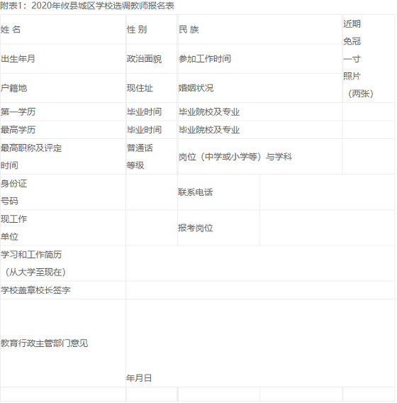 附表1.2020年攸縣城區(qū)學(xué)校選調(diào)教師報(bào)名表