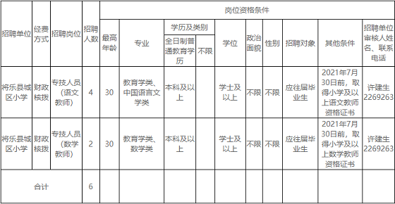 2020年將樂縣第二批公開招聘學(xué)校緊缺急需專業(yè)工作人員崗位信息表
