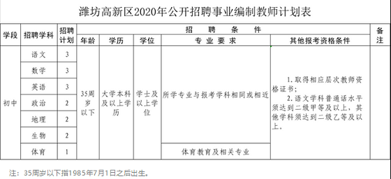 附件:濰坊高新區(qū)2020年公開(kāi)招聘事業(yè)編制教師計(jì)劃表