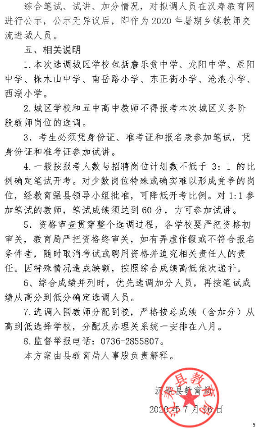 2020湖南常德漢壽縣城區(qū)學(xué)校公開選調(diào)教師公告【41人】
