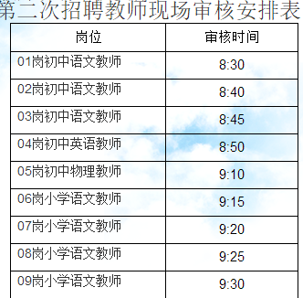 第二次招聘教師現(xiàn)場(chǎng)審核安排表