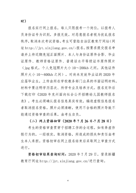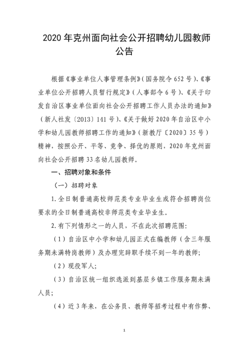 2020年新疆克州面向社會公開招聘幼兒園教師公告【33人】