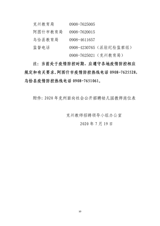 2020年新疆克州面向社會公開招聘幼兒園教師公告【33人】 歡迎加入新疆教師招聘群,群號:537300438,考情、招聘信息早知道 文武教師溫馨提示:近期文武教師網(wǎng)收到舉報,有詐騙分子發(fā)布虛假信息,進行騙取報名費,如信息中涉及報名收費,請各位老師謹慎鑒別,確認無誤后再繳費報名,以免上當受騙,一般教育局組織的招聘才需要支付費用,學校招聘不需要支付,文武網(wǎng)所提供的所有考試信息僅供參考,敬請考生以權威部門公布的正式信息為準。 附件下載: |