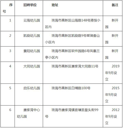 詳見《2020年珠海高新區(qū)公辦園招聘合同制教職工一覽表》(附件1)。