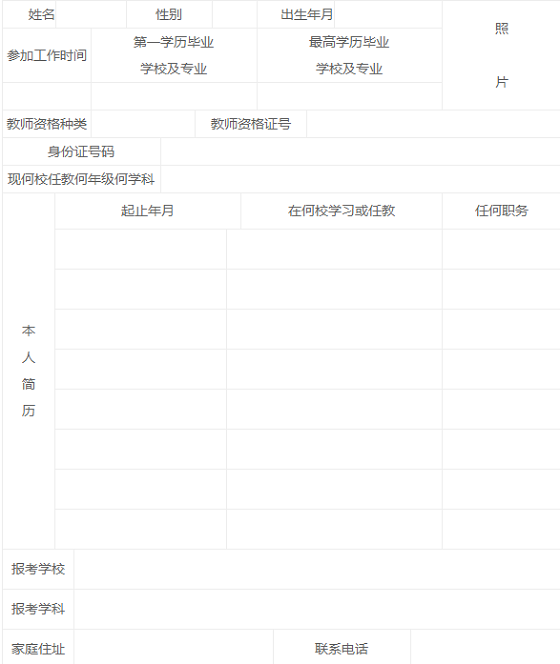 附件2:貴溪市2020年城區(qū)學(xué)校選調(diào)教師報名登記表