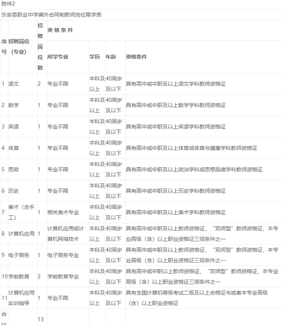 2.樂安縣職業(yè)中學(xué)新增教師崗位需求表