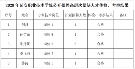 陜西延安職業(yè)技術(shù)學(xué)院2020年公開招聘引進(jìn)高層次緊缺人才體檢、考察結(jié)果的公示
