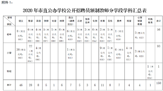 1.懷化市教育局2020年公開招聘市直公辦學(xué)校員額制教師分學(xué)段學(xué)科匯總表