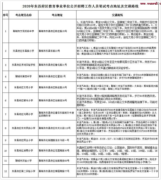 2020年聊城東昌府區(qū)教育事業(yè)單位公開招聘工作人員筆試考點(diǎn)地址及交通路線