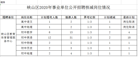 峽山區(qū)2020年事業(yè)單位公開(kāi)招聘核減崗位情況