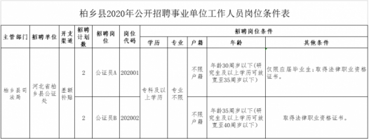 4、具體崗位及報名條件見附件《柏鄉(xiāng)縣2020年公開教師招聘崗位條件表》《柏鄉(xiāng)縣2020年公開招聘事業(yè)單位工作人員崗位條件表》。
