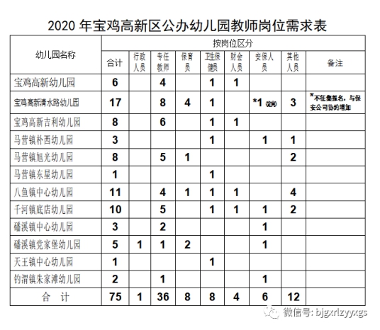 2020年陜西寶雞高新區(qū)公辦幼兒園教職工招聘公告【75人】