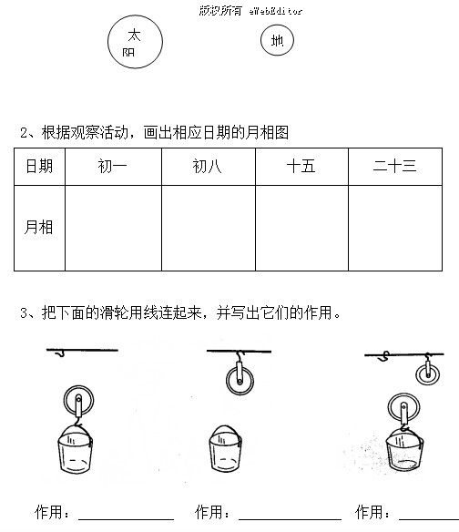 3、把下面的滑輪用線連起來,并寫出它們的作用。