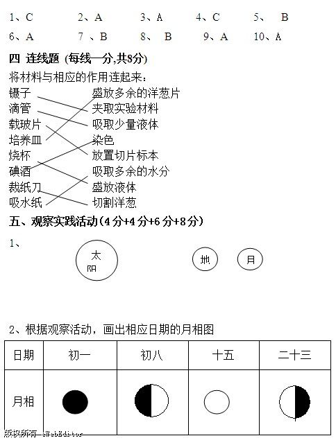 五、觀察實(shí)踐活動(dòng)(4分+4分+6分+6分)