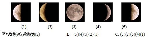 1. 將小紅觀察到的月相按從月初到月末的順序排列正確的是( )