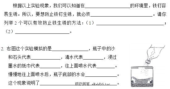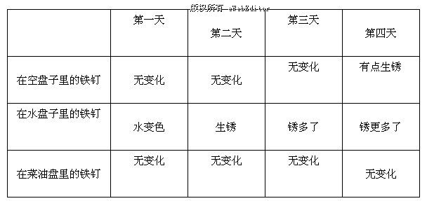 1. 在研究鐵釘生銹原因的對比實驗中,我們可以觀察到以下現(xiàn)象: