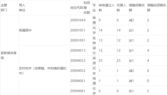 獲嘉縣2020年公開招聘教師工作,報名階段工作已經(jīng)結(jié)束,根據(jù)報名情況和用人單位意見,按照招聘公告的有關(guān)規(guī)定,現(xiàn)對部分招聘崗位予以調(diào)整。具體情況如下:
