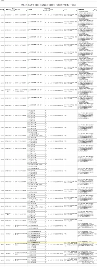 1.鐘山區(qū)2019年面向社會公開招聘合同制教師職位一覽表