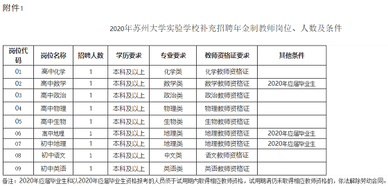 1.2020年蘇州大學(xué)實驗學(xué)校補充招聘年金制教師崗位、人數(shù)及條件