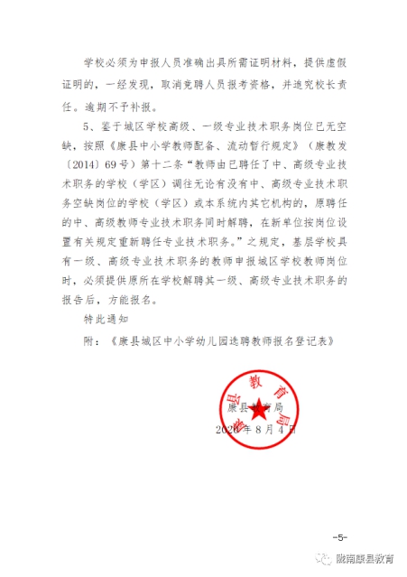 2020年甘肅隴南市康縣城區(qū)部分中小學(xué)公開選聘教師通知【30人】