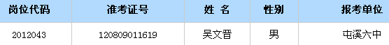 因2012043崗位體檢出現(xiàn)缺額,現(xiàn)根據(jù)《2012年度黃山市市直部分學(xué)校公開招聘教師公告》中“對(duì)體檢、考察出現(xiàn)缺額的,按照規(guī)定程序和時(shí)限,在同崗位報(bào)考人員中,按考試最終成績(jī)從高分到低分依次等額遞補(bǔ),遞補(bǔ)不超過(guò)二次!钡囊(guī)定,遞補(bǔ)吳文晉同志進(jìn)入體檢考察程序,請(qǐng)吳文晉同志于2012年10月9日上午7:30前到黃山市教育局人事科(聯(lián)系電話:0559-2527706)報(bào)到并參加體檢,不按規(guī)定的時(shí)間報(bào)到并體檢的,視作放棄體檢。特此公告。