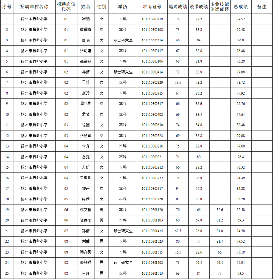 2020年5月?lián)P州教師招聘 揚(yáng)州市蜀岡-瘦西湖風(fēng)景名勝區(qū)學(xué)校公開招聘教師體檢人員名單