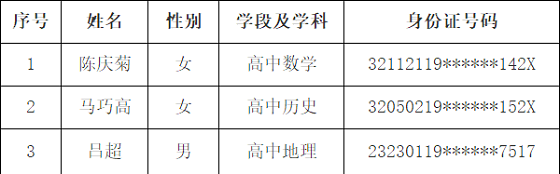 根據(jù)《江蘇省梁豐高級(jí)中學(xué)2020年引進(jìn)高層次教育人才公告》,經(jīng)材料審核、面試考核、體檢、政審合格,現(xiàn)面向社會(huì)公示擬引進(jìn)人員名單。