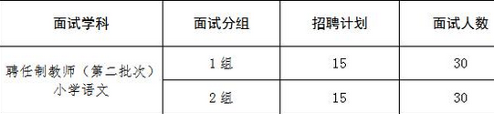 2、小學(xué)語文學(xué)科因面試人數(shù)較多,采用考生自主選組的方式進(jìn)行面試,即:考生按照筆試成績從高到低,依次自主選擇面試1組或2組,分組后再抽簽決定在組內(nèi)的面試順序。面試結(jié)束后,每組評委打分即為考生最終面試成績?荚嚠(dāng)天若有考生缺考,根據(jù)缺考人數(shù),從1組開始依次循環(huán)扣減1個(gè)面試人數(shù)。