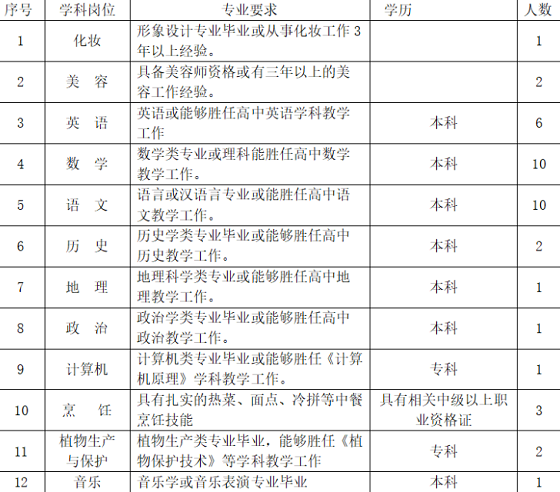 阜陽(yáng)科技工程學(xué)校是一所省級(jí)示范普通中專學(xué)校,界首市職教中心。近年來(lái)學(xué)校發(fā)展迅速,在校學(xué)生激增,師資難以滿足教學(xué)需求。為加強(qiáng)教師隊(duì)伍建設(shè),根據(jù)《國(guó)務(wù)院關(guān)于加快發(fā)展現(xiàn)代職業(yè)教育的決定》《國(guó)家職業(yè)教育改革實(shí)施方案》《安徽省人民政府關(guān)于加強(qiáng)教師隊(duì)伍建設(shè)的意見(jiàn)》(皖政〔2013〕67號(hào))等文件精神,學(xué)校研究決定面向社會(huì)招聘有志于教育事業(yè)的專兼職教師若干名,具體事宜公告如下: