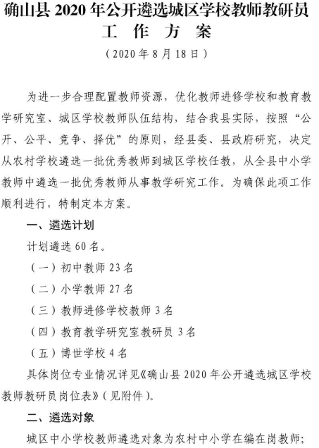 2020年駐馬店教師招聘 河南駐馬店市確山縣公開遴選城區(qū)學(xué)校教師教研員【60人】