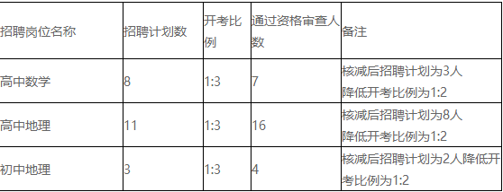 根據(jù)2020年8月10日發(fā)布的《江蘇省鹽城市教育局直屬學(xué)校2020年暑期公開(kāi)招聘教師公告》,8月19日網(wǎng)上報(bào)名結(jié)束并完成資格審核,有部分職位審核通過(guò)人數(shù)未達(dá)開(kāi)考比例,經(jīng)市人社局同意,現(xiàn)核減部分職位招聘計(jì)劃并降低開(kāi)考比例。具體情況如下: