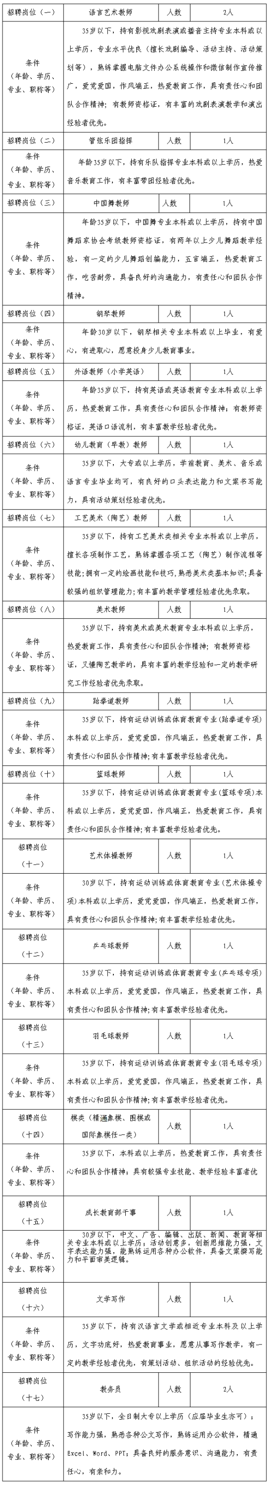 為滿足我宮業(yè)務發(fā)展的需求,現(xiàn)面向社會公開招聘合同制教職工19名。